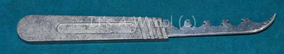 A prop knife like the one appearing the Star Trek: Enterprise episode “Stratagem” for use by “Captain Archer” (Scott Bakula) to cut into the wrist of “Degra” (Randy Oglesby) in removing a Regulan bloodworm. The item is a molded rubber knife with a metal internal framework, the whole item is … |
