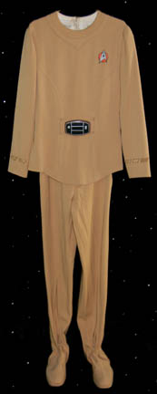 Perhaps the single most perfect unaltered Class-A Starfleet uniform available, this costume featured in Star Trek I: The Motion Picture is tan, features an affixed orange backed Starfleet logo patch on the left breast indicating the wearer to be part of the sciences division, an attached bio-monitor, trousers with attached … |