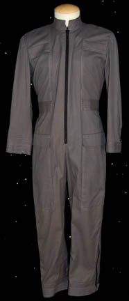A costume featured in both halves of the two part Star Trek: The Next Generation episode “Chain of Command”; This costume consists of a long-sleeved, full-length, black jumpsuit featuring a puckered fabric down the front and back, and raised horizontal stripes across the sleeves and sides. A sewn in Star … |