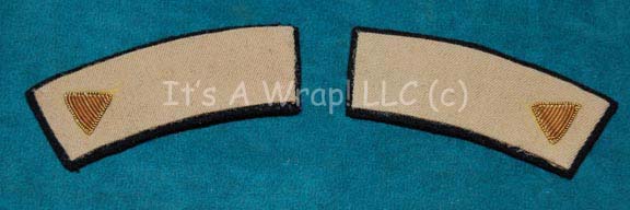 A pair of medical green division-rank strips like those appearing on Starfleet crewman uniforms in Star Trek I: The Motion Picture. The item is green fabric with a gold triangle thread embellishment on a black felt backing. This style of accent would have appeared on Starfleet Class-B, C, and D … |