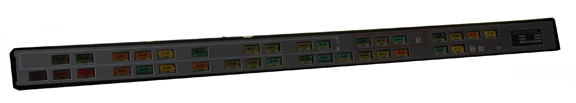 A long indicator panel inset featured in the Star Trek: Enterprise episode “Future Tense” as part of the “Enterprise NX-01” launch bay set. The item is a sheet of smoked acrylic with multi-colored graphical applications adhered to both the face and reverse, and four rubber faux buttons adhered to the … |