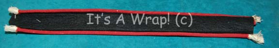 A length of costume fabric created for Starfleet crewman uniforms appearing in Star Trek feature films. The item is a black felt backing with red colored trim made to be combined with a colored fabric thus creating a division strip. The item measures approx. 16.75 X 2 inches. |