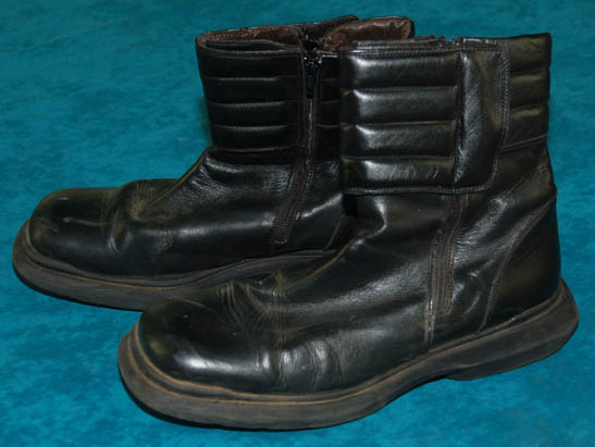 A pair of boots featured in various episodes of Star Trek: Deep Space Nine. These are knee-high, black leather boots featuring rubber trim down the front, across the foot, making a cross with the other trim and with a leather “spike on the left side of the foot. The boots … |