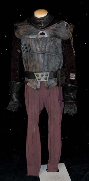 A costume like those featured in various Star Trek feature films. This costume is a Klingon military uniform, it consists of a dark-gray, leather/vinyl pleated, jacket featuring textured, vertical stripes, a dark-gray, shoulder “armor” piece with sturdy rubber accents around the trim, metal tabs, wood and metal accents on the … |