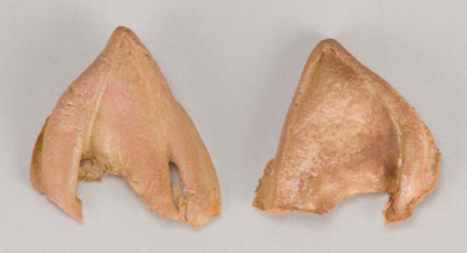 (Paramount, 1984) Two latex ear appendages worn by Robin Curtis as Lt. Saavik in Star Trek III: The Search for Spock. Includes original ziplock bag. |