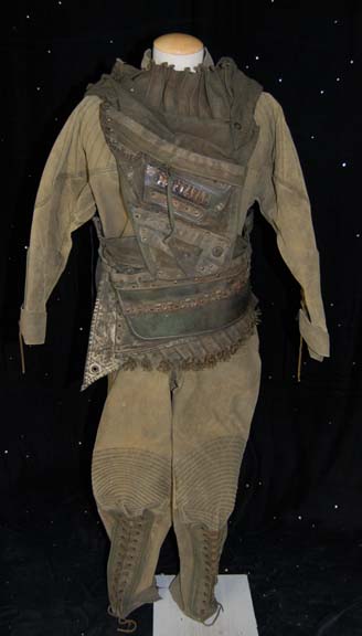 A costume featured in the second half of the two part Star Trek: Voyager story arc “Basics”; wherein the “Kazon” take over “Voyager” and expel its crew to a barren, volcanic planet with unfriendly natives and dangerous beasts. This costume consists of a long-sleeved jacket featuring stripes in black, yellows, … |