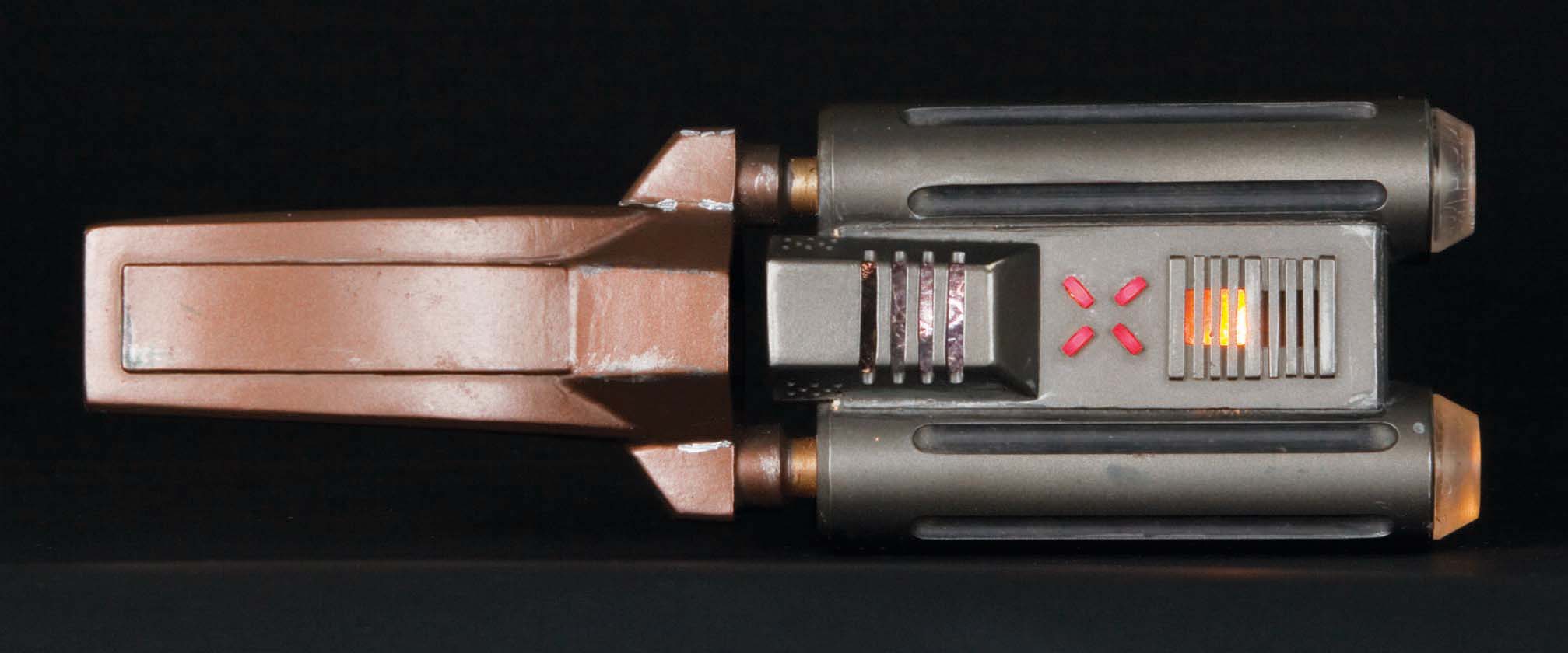 | (Paramount TV, 1994-2001) Silver and black-painted molded resin with green detailing. This weapon was not used onscreen. Measures approx. 4½ inches long. Originally acquired from the show’s propmaker. |