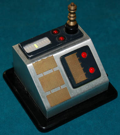 An electronic scrambling device component featured in the Star Trek: Voyager episode, “Threshold” in which “Captain Janeway” (Kate Mulgrew) and “Tom Paris” (Robert McNeill) were transformed into Transwarp Humans. The device is made of brushed aluminum on a black acrylic base with black acrylic accents and gold colored metal detail. … |