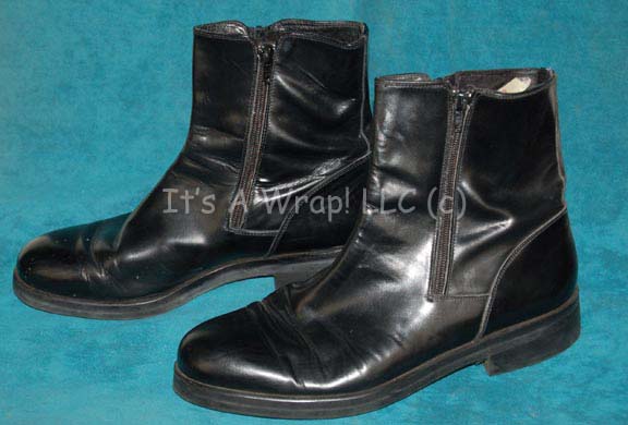 A pair of shiny black leather men’s boots appearing variously in Star Trek episodic television and/or feature films and are compatible with generally any Starfleet uniform. The boots feature zips on the inside and outside of the leg, and while clearly used, the soles are in excellent condition. Labels applied … |