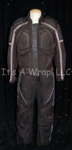 A costume featured in the Star Trek: Enterprise episode “Anomaly”; wherein the “Enterprise NX-01” is attacked and raided by pirates called “Osaarians”. This costume consists mostly of components garnered from motorcycle wear; a long-sleeved, black jacket featuring multiple sites of reinforced padding, black, textured rubber accents, a concealed, sturdy zipper, … |