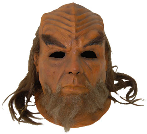 This incredible full head Klingon mask was used in Star Trek VI: Undiscovered Country, during a courtroom scene that involved around 200 Klingons. In order to dress that many actors in Klingon makeup, the background actors in the upper balconies wore these full faced masks to make the process quicker … |