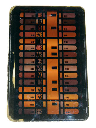 A piece of set dressing believed to have been used in various episodes of Star Trek: The Next Generation. The item is a rectangular shaped piece of smoked acrylic with graphical applications adhered to the reverse. Used as background in various scenes, when these LCARS (Library Access and Retrieval System) … |