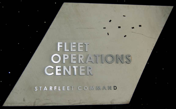This piece of set dressing presumably appeared in various locations on Star Trek: Deep Space Nine during the Dominion War. This item is a rectangular piece of smoked acrylic in the LCARS (Library Computer Access and Retrieval System) style, featuring graphical applications of the United Federation of Planets Insignia, the … |