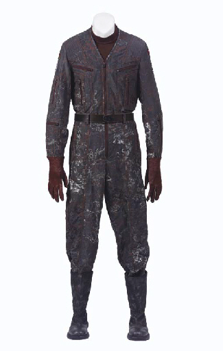 A long-sleeved MACO "space marine" duty fatigue jacket of distressed urban camouflage, with corresponding pants and boots, with brown cotton t-shirt, with <I>Enterprise</I> label inside inscribed <I>Daniel Kim</I> -- made for Daniel Dae Kim as Corporal Chang in "The Xindi" in <I>Star Trek: Enterprise</I> labels inside indicate subsequent use by … |
