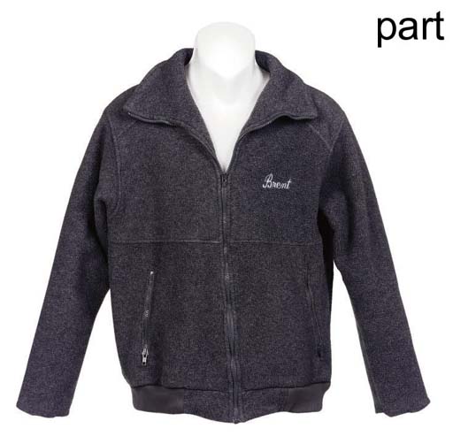 Six long-sleeved jackets of grey or black fleece, each embroidered on the chest with the actor's first name -- made for Levar Burton (2) one with sewn in tag reading <I>Members Only, 42</I>, Brent Spiner, Gates McFadden and Marina Sirtis to wear on the set of <I>Star Trek: The Next … |