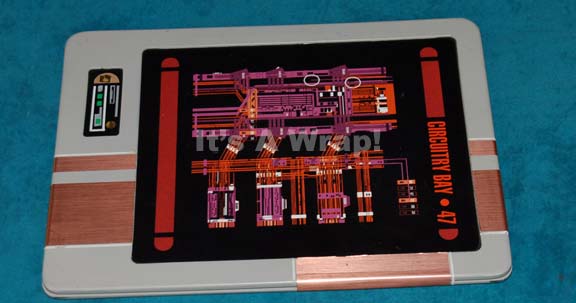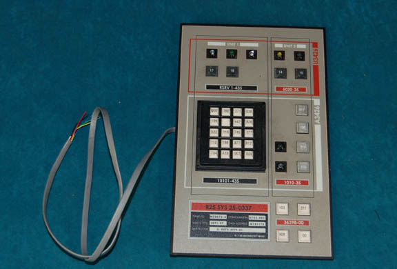 A console button board like those appearing on the bridge of the “Enterprise NX-01” in varying episodes of Star Trek: Enterprise. The item is a piece of sheet plastic with a multi-colored graphical application adhered to the face, a bank of depressible buttons , rubber faux buttons, and a series … |