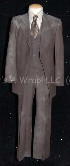 A costume featured in the Star Trek: Enterprise episode “Demons” for wear by “Mercer” (Patrick Fishler). The costume is composed of a three piece suit comprised of 100% wool pants, matching wool and gold silk vest, a matching suit jacket, shirt and a striped tie. The costume is distressed to … |