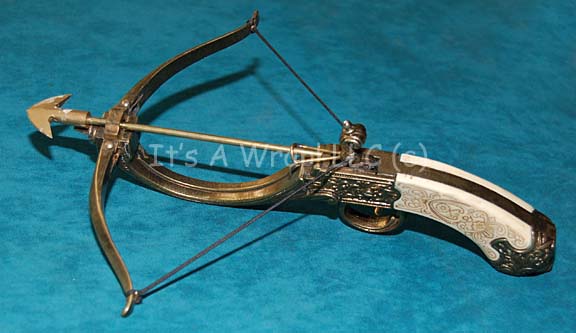 A prop item featured in the Star Trek: Voyager episode “Concerning Flight”; wherein a pirate steals the Voyager main computer and several other things including the program for the “Leonardo da Vinci” hologram. This item is a non-working, brass, miniature, weapon featuring intricate carved designs and faux pearl handle; it … |
