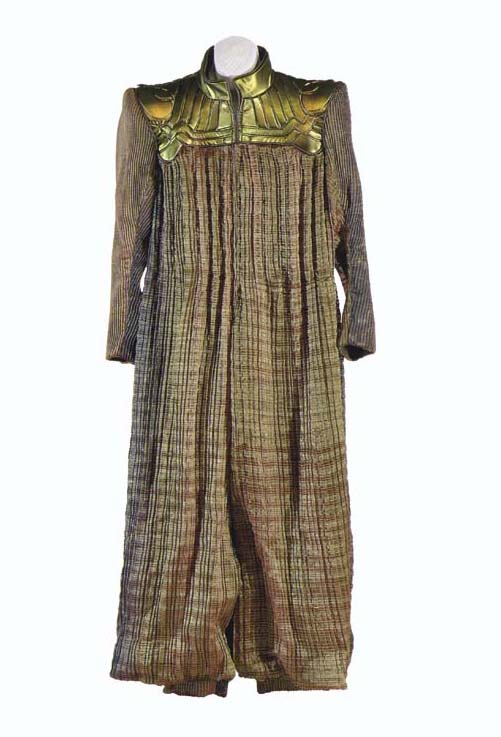 Four costumes worn by Xindi characters during the third season of <I> Star Trek: Enterprise</I>, comprising: Gralik's vinyl jumpsuit with three belts -- worn by John Cothran, Jr. in "The Shipment"; Xindi reptilian ambassador's costume (minus shoulder cage) -- worn by Scott MacDonald; a leather coat with white imitation fur … |