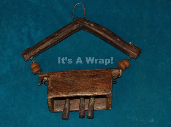 A piece of set dressing featured in the Star Trek: Enterprise episode “E²”. This item appeared as dressing in the quarters of the elderly “T’Pol” in the alternate "Enterprise NX-01", identified through set dressing continuity guide as a doorknocker and consists of a roughly-triangular, wooden housing with the small spires … |