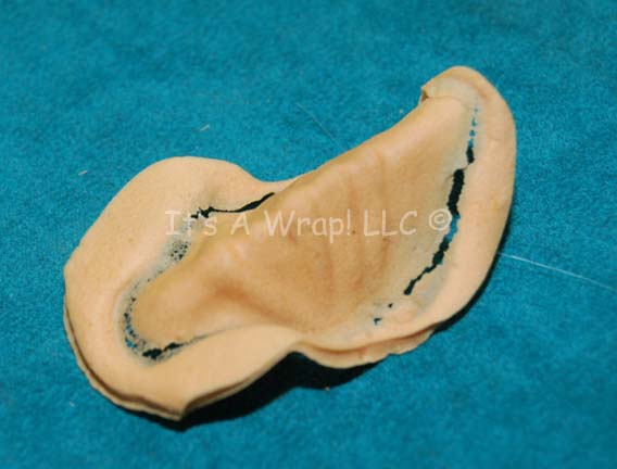 A piece of unused special effects make up created for episodes of Star Trek: Voyager like “Good Shepard” and “The Haunting of Deck 12” for wear by Zoe McClellan in her portrayal of “Tal Celes”. The item is a molded foam rubber crinkled nose bridge appearing on Bajoran characters. It … |