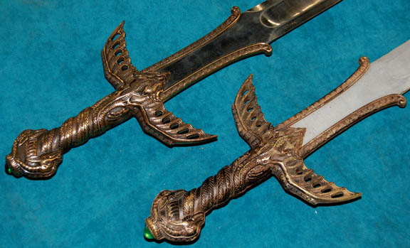 A lot of two prop swords featured in the Star Trek: Voyager episode “False Profits”; wherein “Voyager” comes upon a primitive planet being exploited by the two Ferengi who disappeared through the “Barzan Wormhole” in the TNG episode “The Price”. This consists of two prop swords that feature a green … |