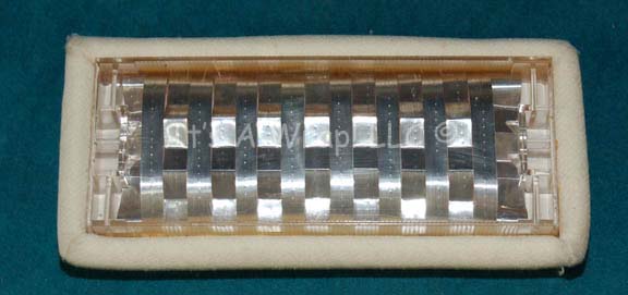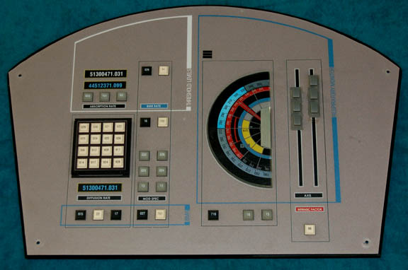 A piece of set dressing featured in the Star Trek: Enterprise episode “Vanishing Point”; wherein a transporter accident has “Ensign Sato” (Linda Park) believing that she is becoming invisible to the crew. This item is an irregularly-shaped piece of smoked acrylic with a gray, graphical application of an instrument panel … |