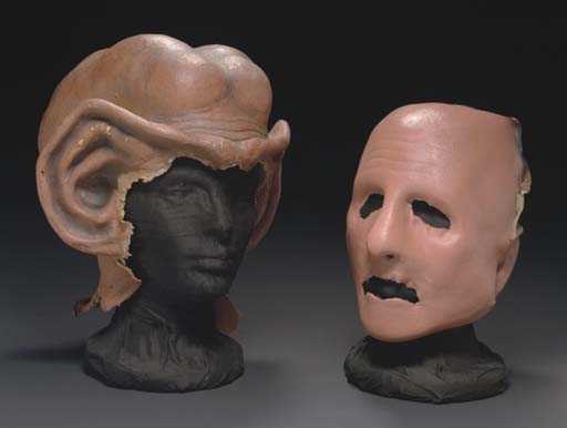 Two make-up appliances cast from foam latex, comprising: a full-face make-up appliance, the foam latex painted pink -- made for Rene Auberjonois as Odo in <I>Star Trek: Deep Space Nine</I>; and a full head make-up appliance with open face, the foam latex painted and airbrushed pink and black -- made … |