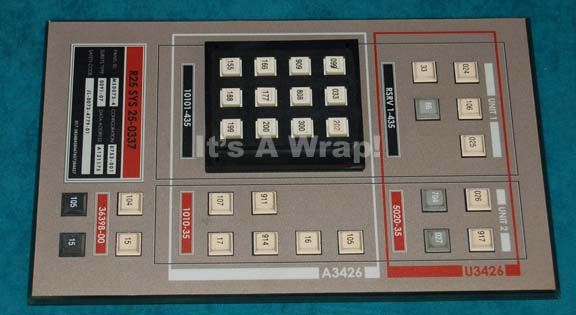 A set dressing button board like those appearing variously on the set of the “Enterprise NX-01” in episodes of Star Trek: Enterprise. The item is smoked acrylic with beveled edges and a graphical application adhered to the face that depicts a Starfleet inventory application, a single bank of press buttons, … |