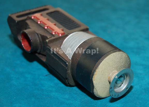 A prop item like those featured in various Star Trek feature films and episodic television. This item is resin cast, rod-shaped, painted a metallic-bronze, featuring multiple, multicolored, raised or textured accents meant to denote technology. On one end there is a screw jutting out attached to a bracket for either … |