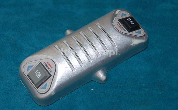 A prop universal translator featured in the Star Trek: Enterprise episode “Demons” and “Terra Prime” for wear by “T’Pol” (Jolene Blalock). The item is injection molded plastic painted metallic silver with graphical applications adorning both ends of the item and a pair of rubber faux buttons with numeric values colored … |