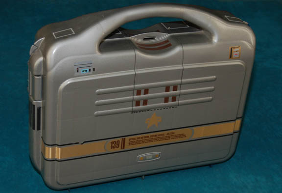 A prop item like those featured in TNG-era Star Trek feature films and various episodes of Voyager. This item is a metal gray-colored, plastic carry case featuring multiple, metallic graphical applications, gold-colored Post Generations-style Starfleet emblem on both sides, sturdy buckles on the sides, separated spaces inside for tools and … |