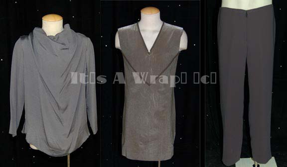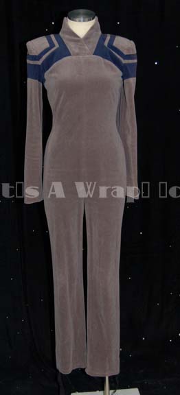 A costume featured in the Star Trek: The Next Generation episode “Deja Q”; wherein “Q” (John De Lancie) returns as a powerless human while the “Enterprise-D” attempts to help Bre'el IV re-stabilize their moon’s orbit. This costume is that of one of the ‘alien babes’ that “Q” summons up as … |