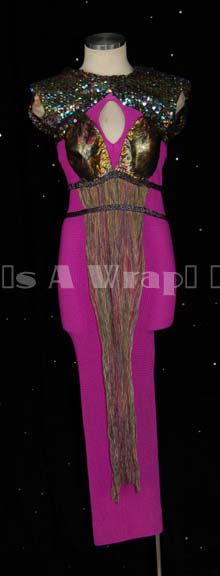 A dress featured in the Star Trek: The Next Generation episode “Man of the People”; wherein “Deanna Troi” (Marina Sirtis) starts to behave jealously and inappropriately after conducting a “funeral rite” with an ambassador named “Ves Alkar” who is set to settle a fierce civil war. This dress is the … |