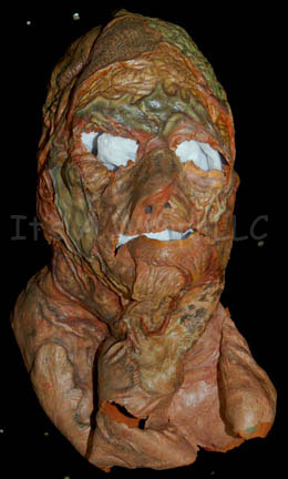 A special effects make up mask created for the Star Trek: Voyager episode “Phage” or “Faces” where it may have been recreated or reused. The item is a molded foam rubber mask fashioned and painted to represent the mottled mess of a Vidiian head made up of scavenged alien flesh … |