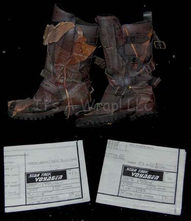 A lot of a pair of boots and two schematic drawings from the first part of the Star Trek: Voyager episode “The Basics: Part I”; wherein the Kazon-Nistrim takes over Voyager sets her crew down on a desolate planet. The boots are for wear by Anthony DeLongis in the role … |