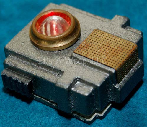 A prop item created for episodes of Star Trek: Voyager intended to be a Hirogen tricorder. The item is modeled after the visual augmentation device used by “Noss” (Lori Petty) in the episode “Gravity” but differs in that it features sequentially flashing lights internally and an altered external appearance. By … |