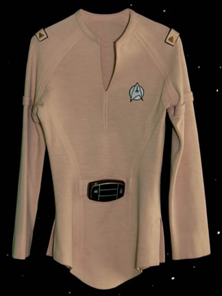 A Starfleet uniform made in the style of Star Trek: The Next Generation and reused in the finale episode of Star Trek: Enterprise “These are the Voyages…”. This costume features black shoulders with an Operations Gold chest, back, sleeves, and around the Mandarin collar; black waist and legs that end … |