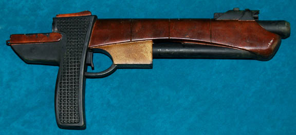 A prop weapon featured in the Star Trek: Enterprise episode “Detained”; wherein “Captain Archer” (Scott Bakula) and “Ensign Mayweather” (Anthony Montgomery) accidentally stray into a militarized zone, are taken into custody by a race called the Tandarans, and imprisoned along with a number of Suliban. This item is a rubber … |