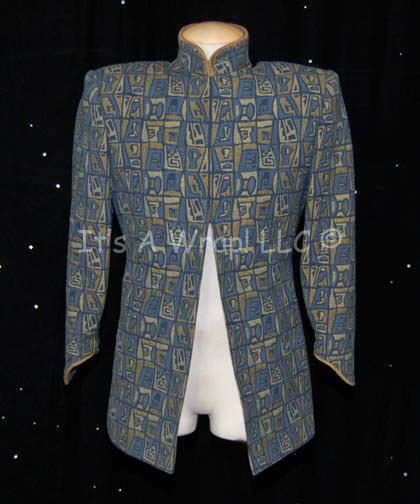 A costume element featured in the sixth Star Trek feature film “The Undiscovered Country”. This item is the uniform jacket of the co-conspirator Romulan Ambassador “Nanclus” (Darryl Henriques), it is a long-sleeved, jacket with a Mandarin collar and featuring an interlocking design of Romulan-style hieroglyphs in various shades of blue, … |