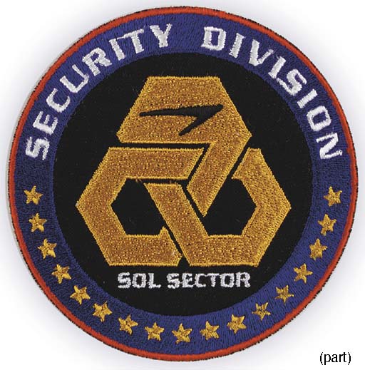 Three round embroidered shoulder patches with the Starfleet security logo and the words <I>Security Division, Sol Sector</I> -- <I>3½in.</I> -- made for security officers' uniforms on Earth in "Home" in <I>Star Trek: Enterprise</I> (3) |