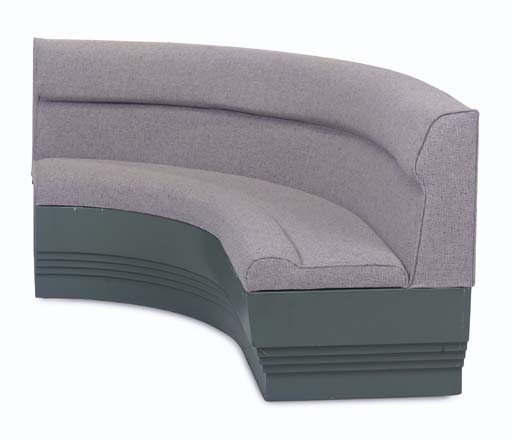 A curved couch with grey upholstery and green-painted wooden base -- <I>29x75x22in.</I> -- used in the Ten Forward set of the <I>Enterprise-D</I> in <I>Star Trek: The Next Generation</I> |