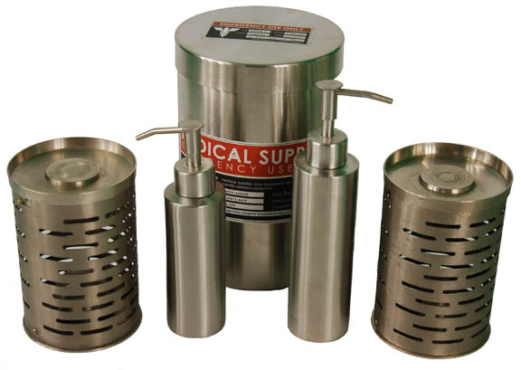 Dr. Phlox’s sickbay onboard the NX-01 Enterprise during the Star Trek: Enterprise series was stacked full of containers including these four medical containers used as set dressing. This lot includes two metal containers with oblong clear plastic windows in the side, one has an impressive four Starfleet medical labels on … |