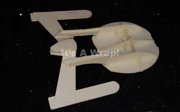A white foam core camera test model like those used in Star Trek feature films and episodic television. The item is representative of an “Akira-Class” starship, the likes of which appeared variously in Star Trek VIII: First Contact and in episodes of Star Trek: Deep Space Nine and Voyager like … |