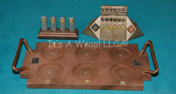 (Paramount-TV, 1993-99) Retro-style medical tools, similar to those used by Dr. McCoy from the Original Series, including a hypo and working scanner. Five pieces total, housed in a black leather pouch. Used by Dr. Bashir in the DS9 episode, "Trials and Tribblations." |