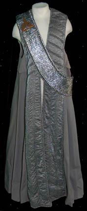 A costume featured in the Star Trek: The Next Generation episode “Sins of the Father” wherein “Lieutenant Commander Worf” (Michael Dorn) goes to the Klingon home world with his brother to challenge a long-standing charge of treason against his father. The costume is a long, gray, sleeveless robe with reflective … |