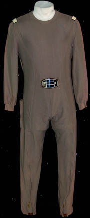 An excellent representative of Starfleet uniform jumpsuits featured in Star Trek I: The Motion Picture. The item is a gray colored jumpsuit with affixed shoulder mounted white command division strips, and an affixed plastic bio-monitor at the belly. A slight degree of fading is evident on the sleeves and shoulders … |
