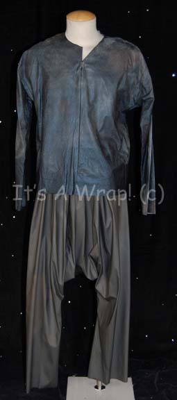 A costume featured in the Star Trek: Voyager episode “United” in which “Commander Chakotay” (Robert Beltran) discovers a group of Alpha Quadrant aliens living semi-harmoniously after having been captured and assimilated into the Borg Collective. This costume is from the collection of humanoids seeking harmony, a gray/green costume top with … |