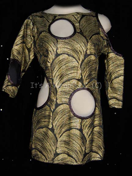 A costume similar to those featured throughout Star Trek: Deep Space Nine. This costume consists of a long-sleeved, burnt-orange colored jacket sewn onto neoprene to give it bulk and featuring a mustard-colored design of multi-colored diamonds along the shoulders and down the sleeves; an iridescent violet, pleated insert that goes … |