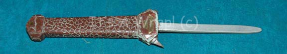 A prop Klingon themed knife like those appearing in the Star Trek: The Next Generation episode “Sins of the Father” for use by the attackers of “Captain Picard” (Patrick Stewart) while serving as ‘Cha’DIch’ to “Worf” (Michael Dorn). The item is a molded resin hand grip with a molded rubber … |